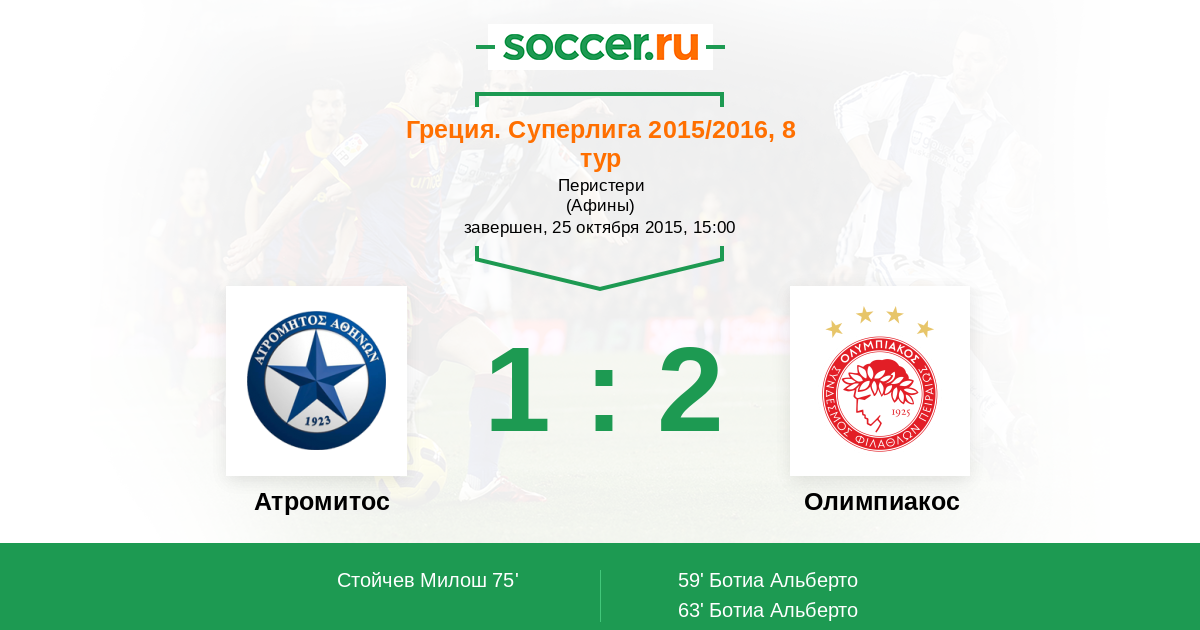 Протокол матча Атромитос против Олимпиакос