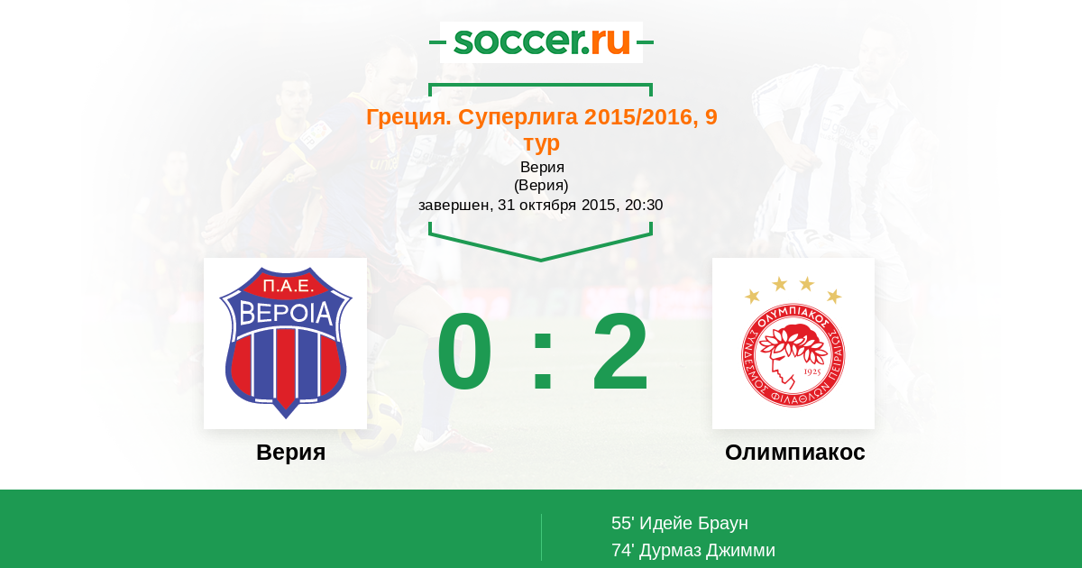 Протокол матча Верия против Олимпиакос