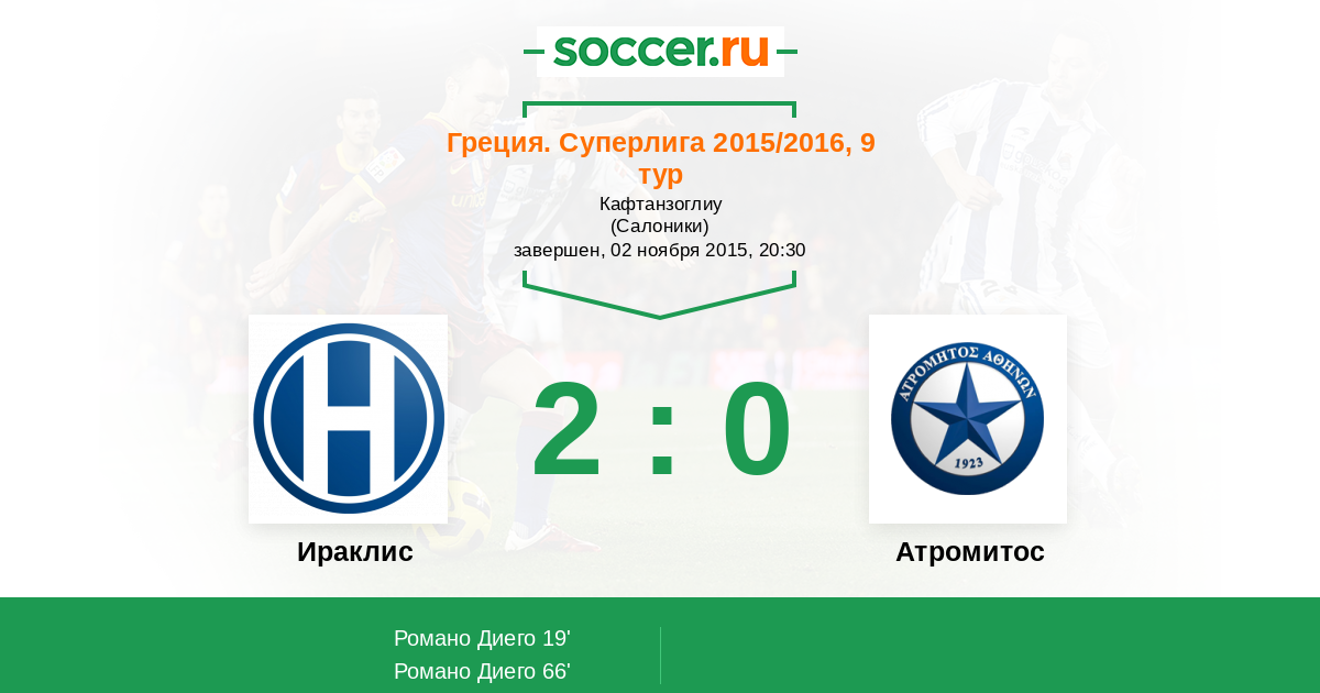 66' (2:0) Романо Диего (10) (Букувалас Михалис (2))