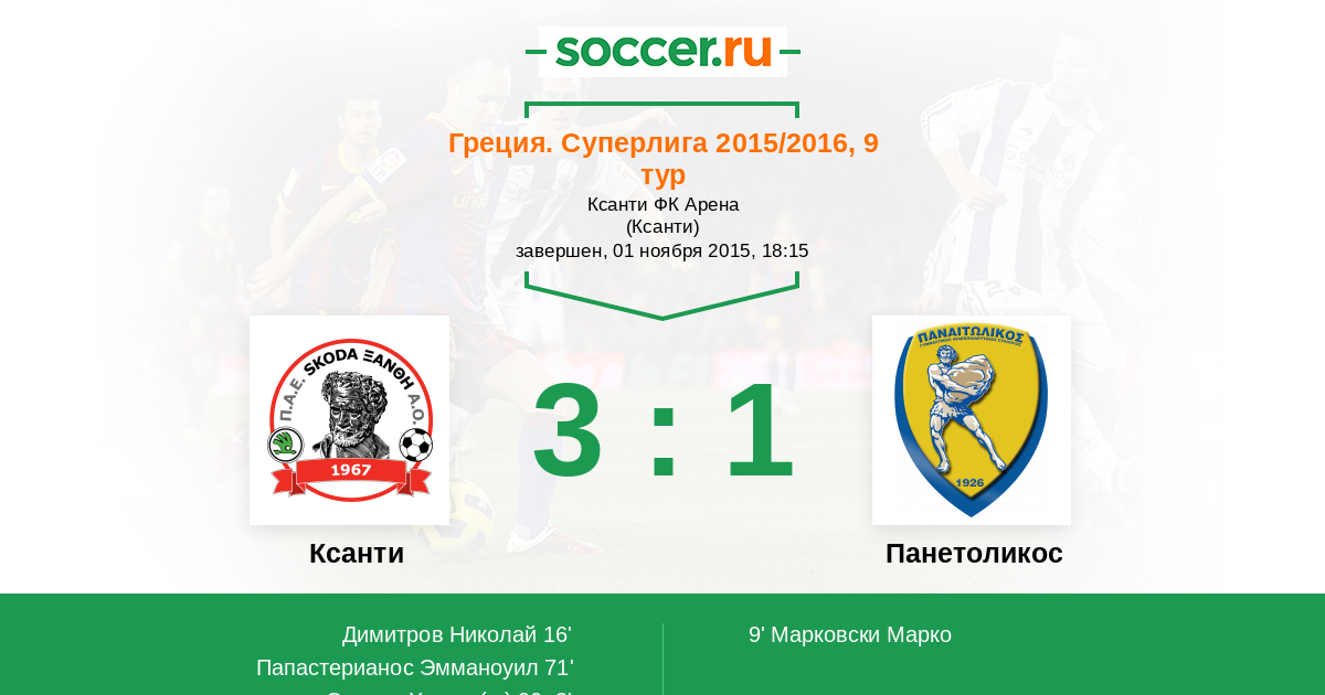 Протокол матча Ксанти против Панетоликос