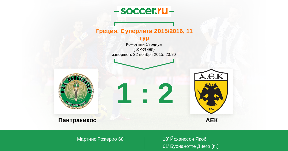 Протокол матча Пантракикос против АЕК