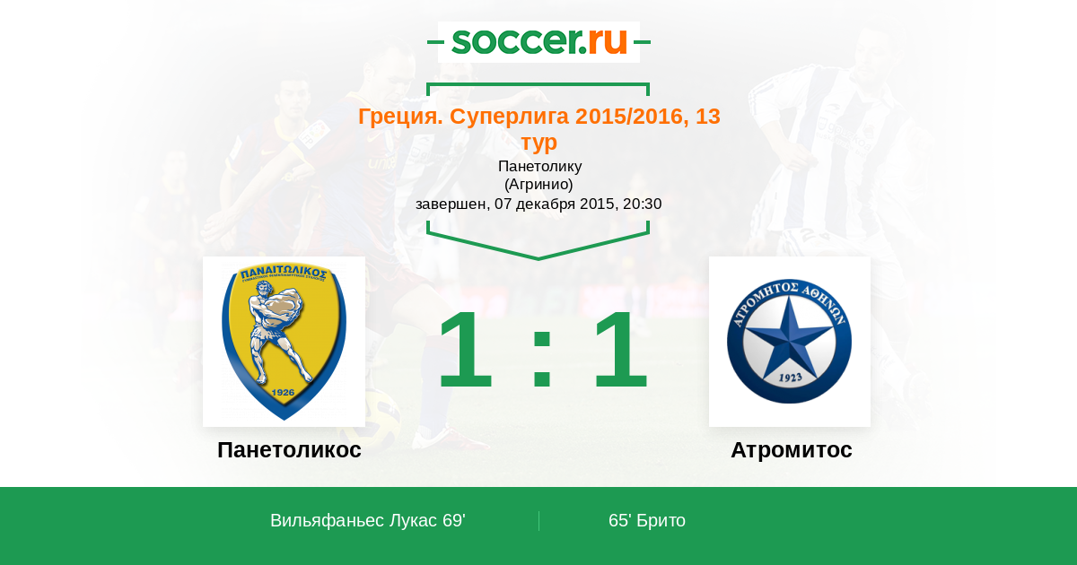Протокол матча Панетоликос против Атромитос