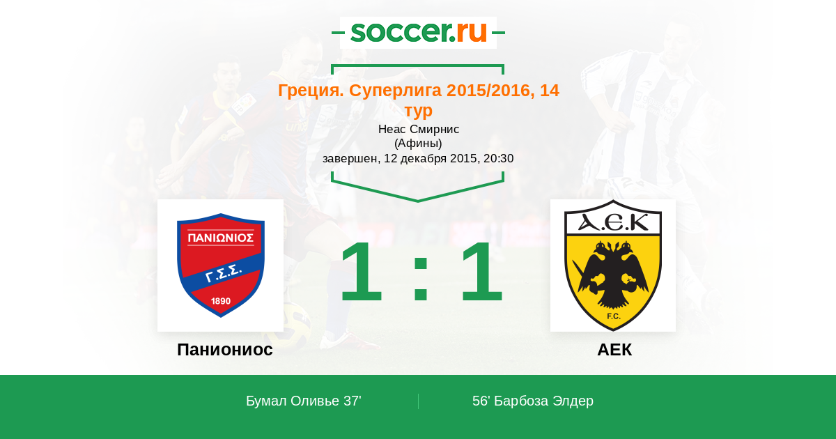 Протокол матча Паниониос против АЕК