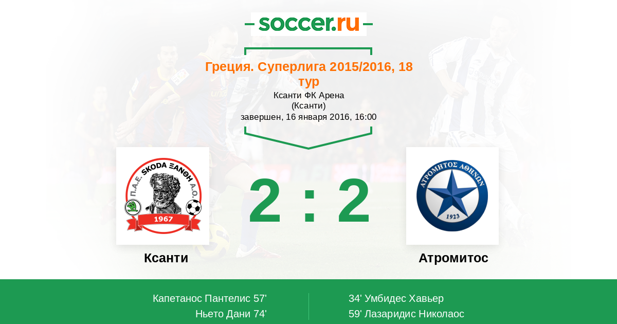74' (2:2) Ньето Дани (23) (Капетанос Пантелис (30))
