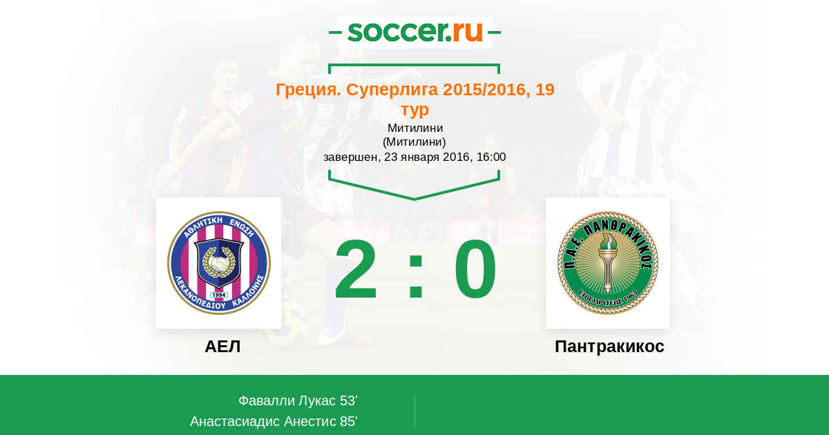 85' (2:0) Анастасиадис Анестис (14) (Спиропулос Панайотис (6))