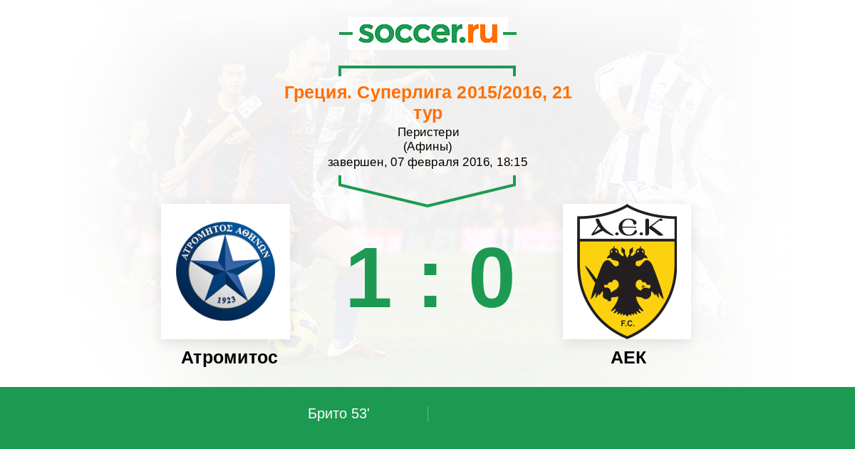 53' (1:0) Брито (7) (Ле Таллек Антони (14))