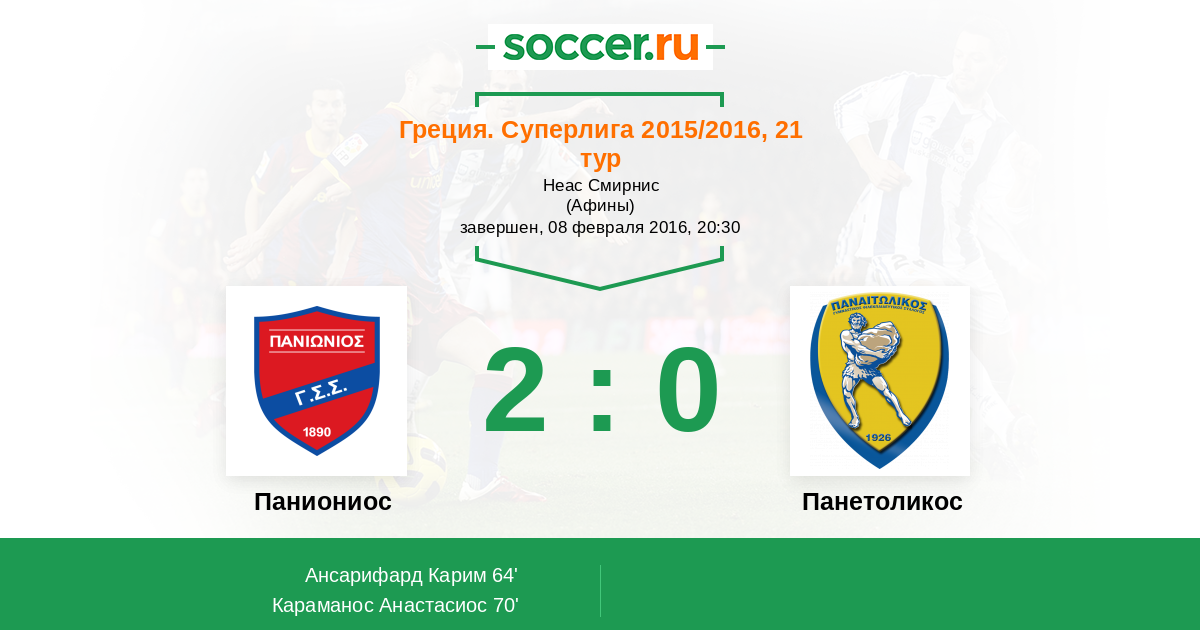 70' (2:0) Караманос Анастасиос (9) (Тасулис Христос (3))