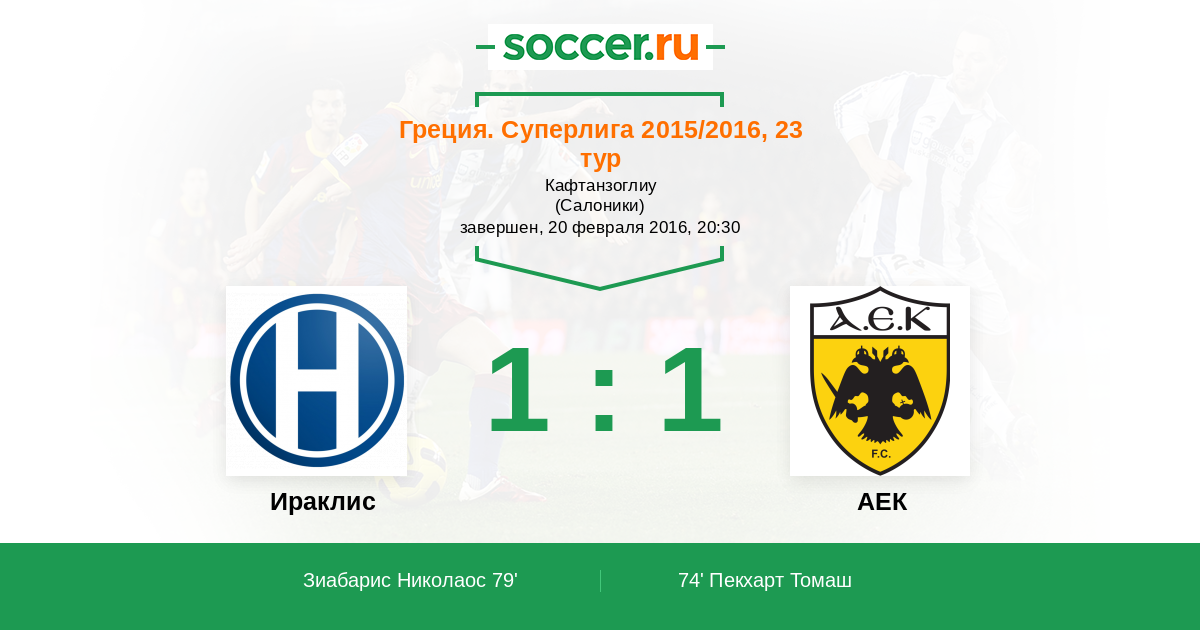 Протокол матча Ираклис против АЕК