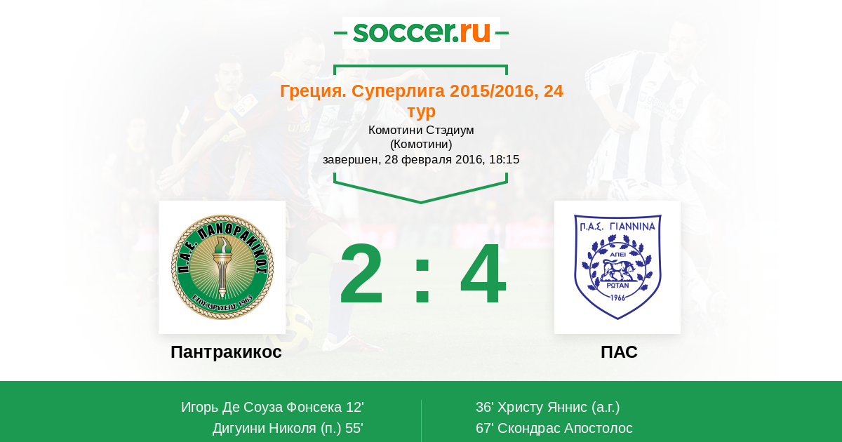 67' (2:2) Скондрас Апостолос (44) (Цимопулос Темистоклис (8))