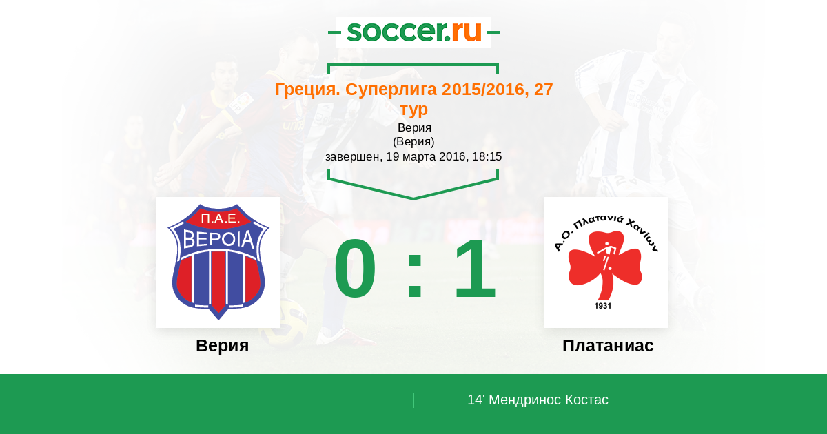 Протокол матча Верия против Платаниас
