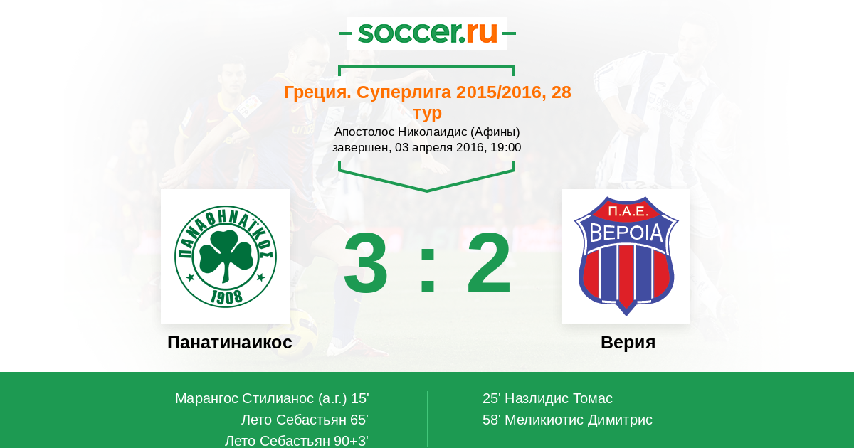 Протокол матча Панатинаикос против Верия