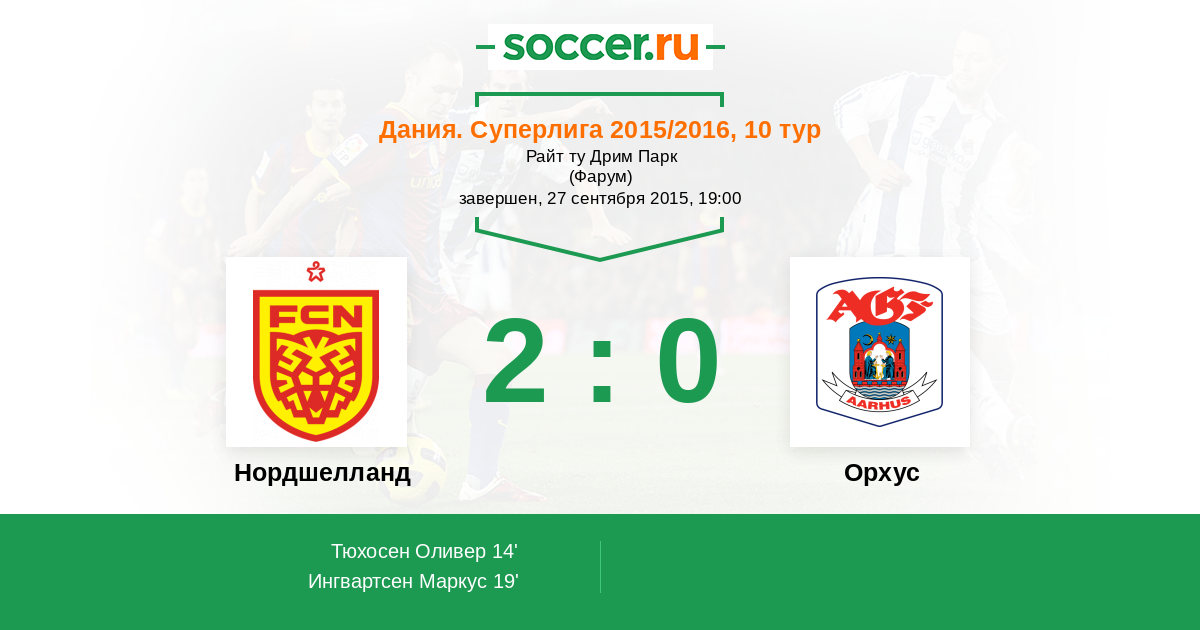 Протокол матча Нордшелланд против Орхус