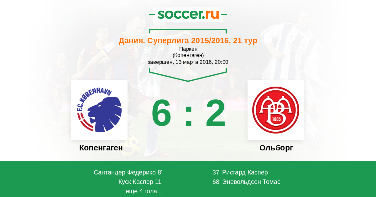Протокол матча Копенгаген против Ольборг
