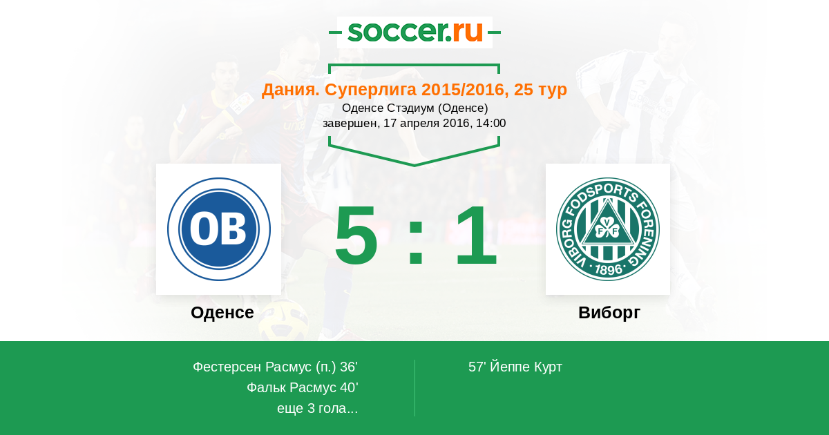 Протокол матча Оденсе против Виборг