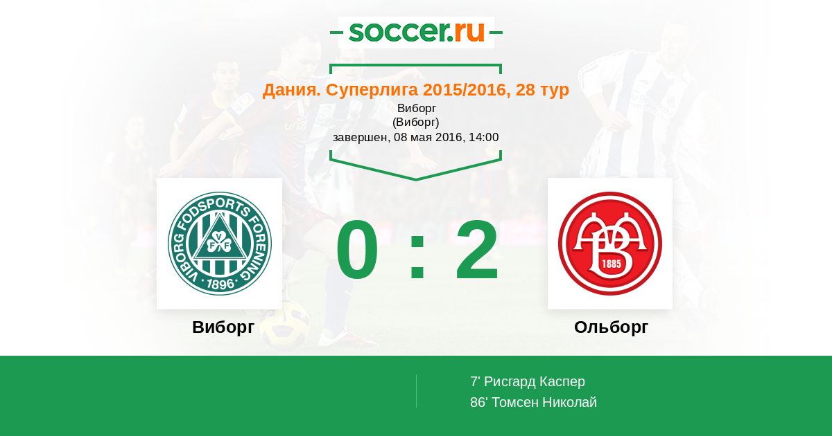 Протокол матча Виборг против Ольборг