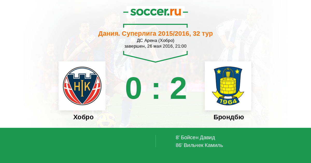 Протокол матча Хобро против Брондбю