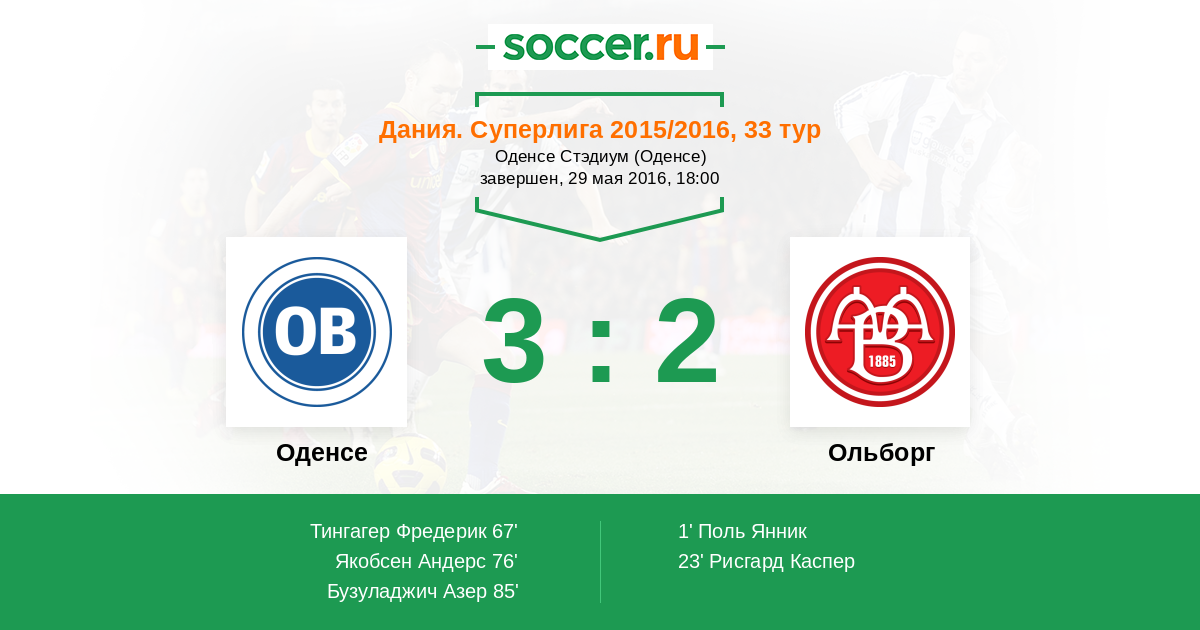 Протокол матча Оденсе против Ольборг