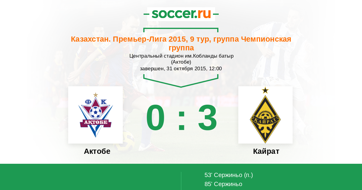 Протокол матча Актобе против Кайрат
