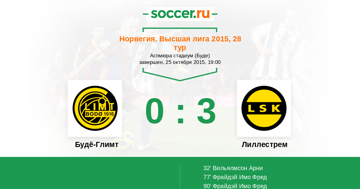 32' (0:1) Вильялмсон Арни (9) (Фрайдэй Имо Фред (23))