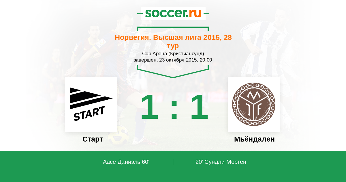 60' (1:1) Аасе Даниэль (9) (Стоккелиен Мадс (18))