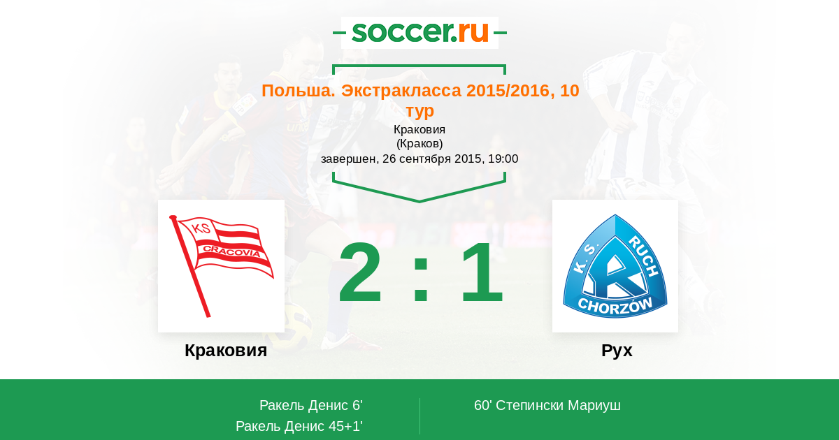 Протокол матча Краковия против Рух