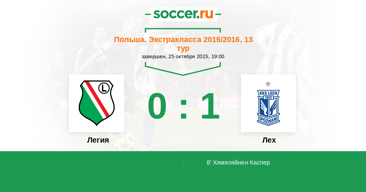 Протокол матча Легия против Лех