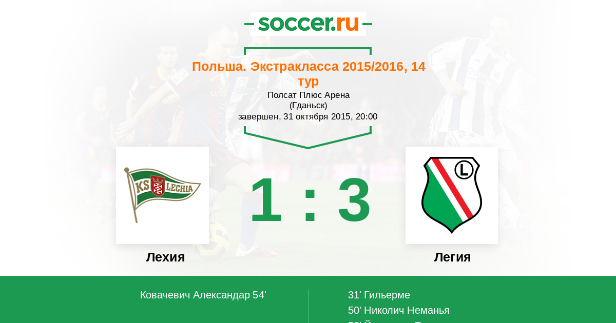 Протокол матча Лехия против Легия