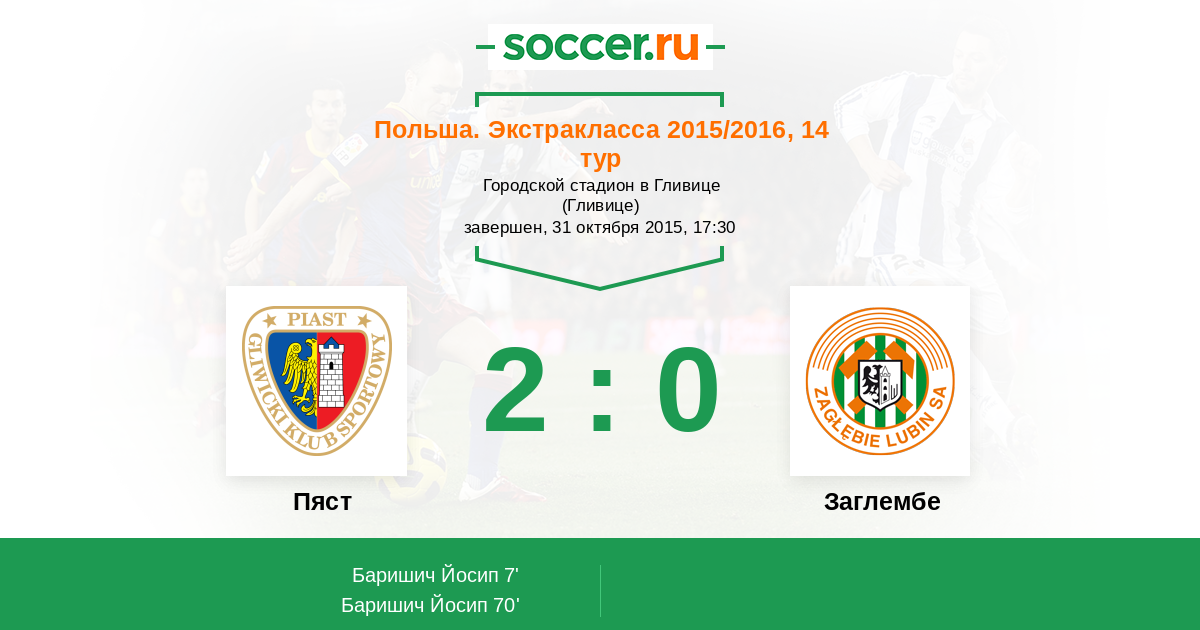 Протокол матча Пяст против Заглембе