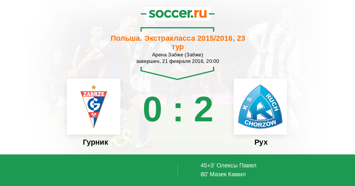 Протокол матча Гурник против Рух