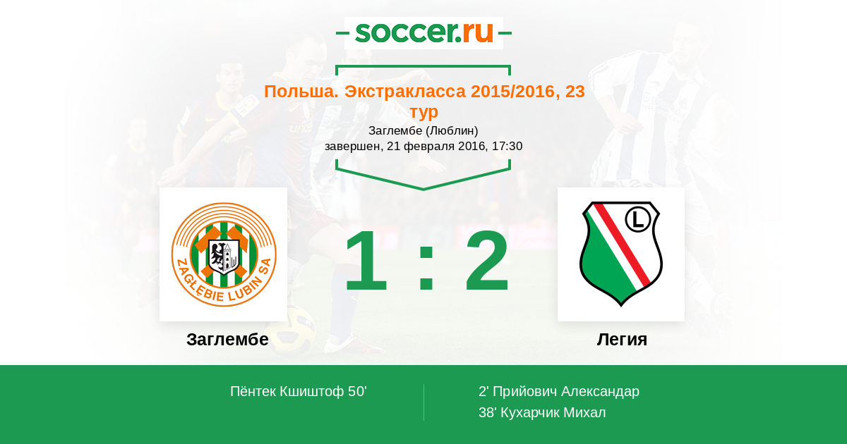 Протокол матча Заглембе против Легия