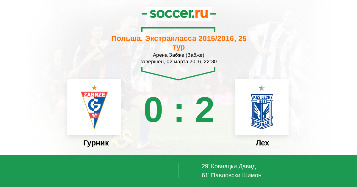 Протокол матча Гурник против Лех