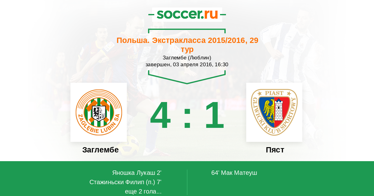Протокол матча Заглембе против Пяст