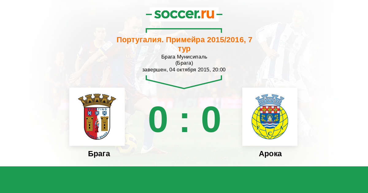 Протокол матча Брага против Арока
