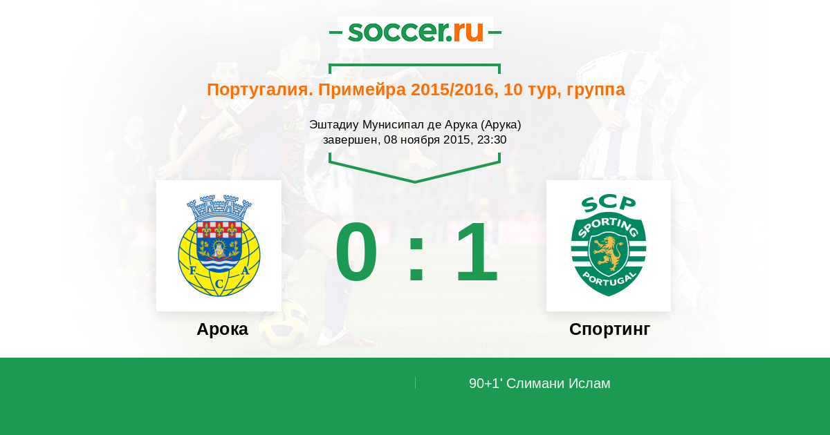 Протокол матча Арока против Спортинг