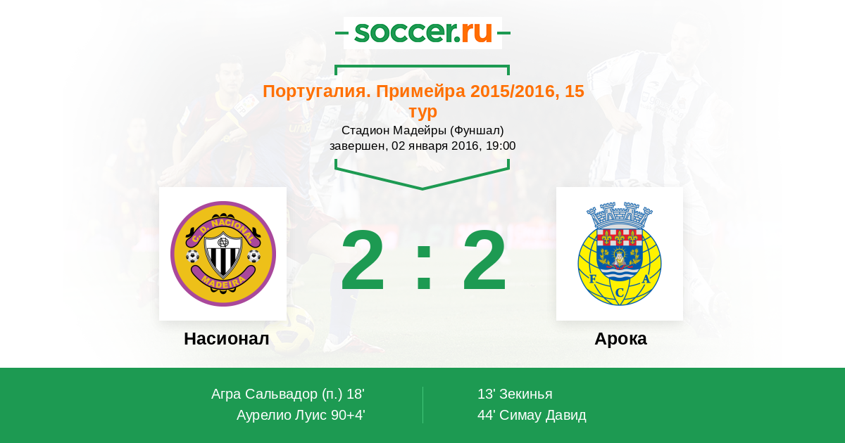 Протокол матча Насионал против Арока