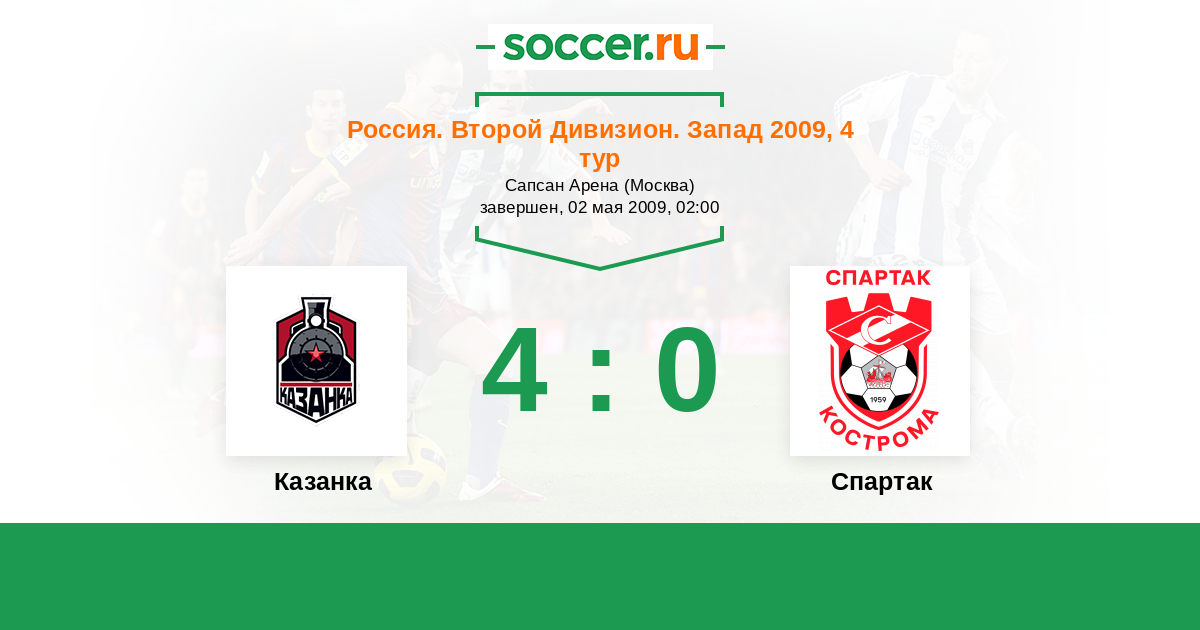 Россия. Вторая лига. Группа 2 16.05.2018 Казанка Логотип футбольный клуб Казанка (Москва) 0:0 Логотип футбольный клуб Спартак Кострома Спартак Кострома