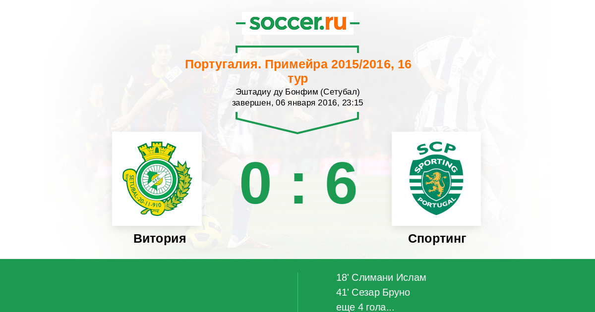 Протокол матча Витория против Спортинг