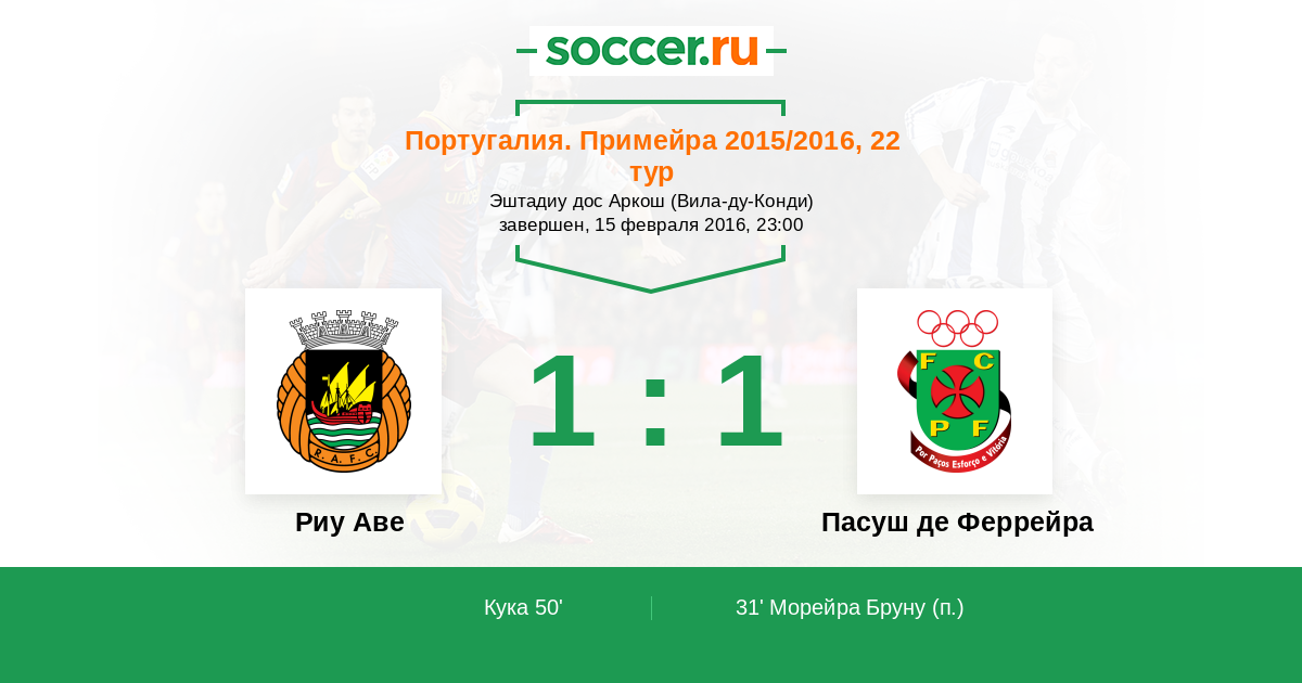 Протокол матча Риу Аве против Пасуш де Феррейра