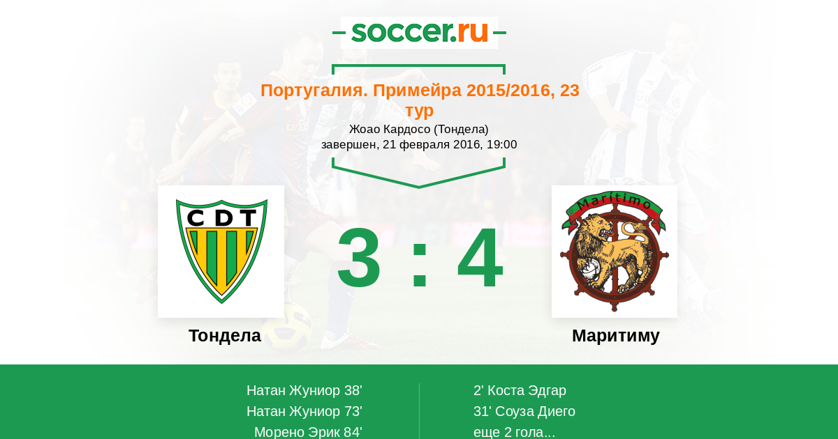 Протокол матча Тондела против Маритиму