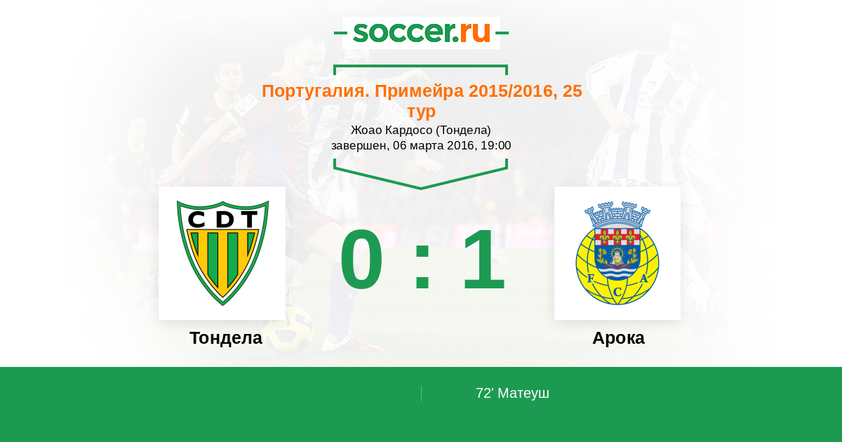 Протокол матча Тондела против Арока