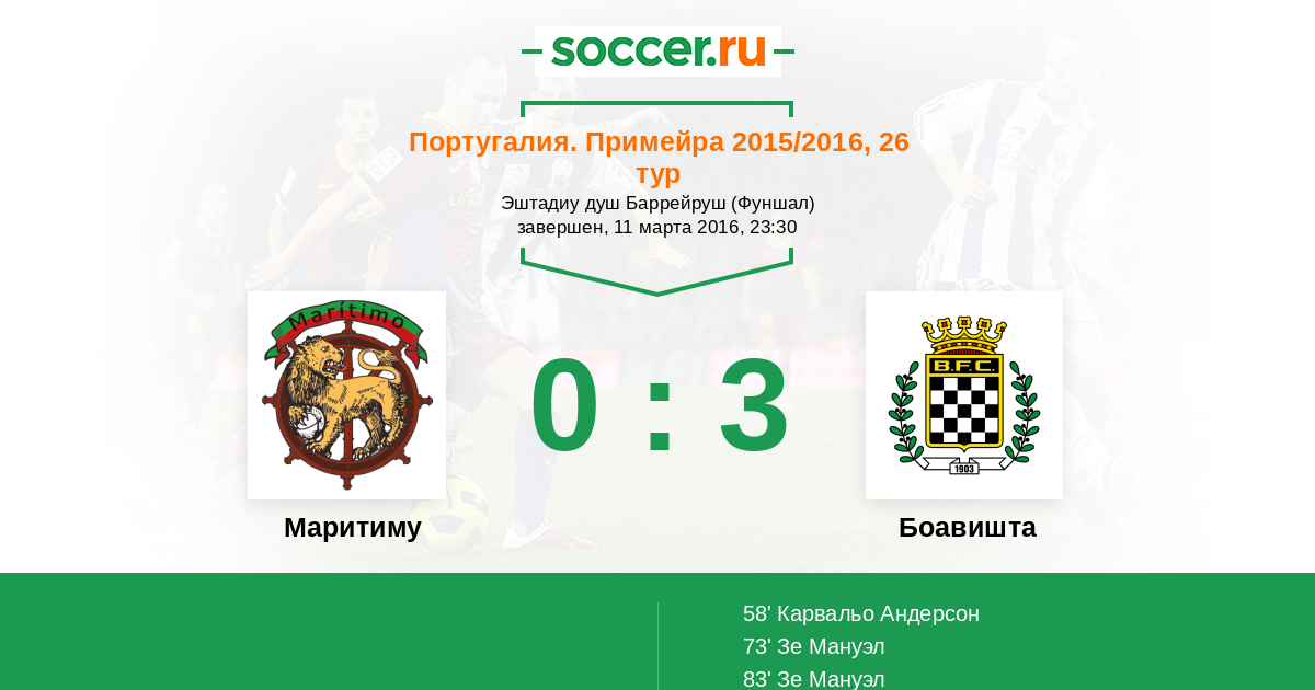 Протокол матча Маритиму против Боавишта