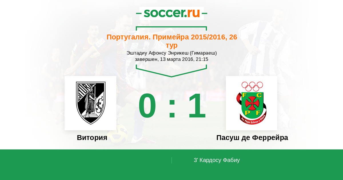 Протокол матча Витория против Пасуш де Феррейра