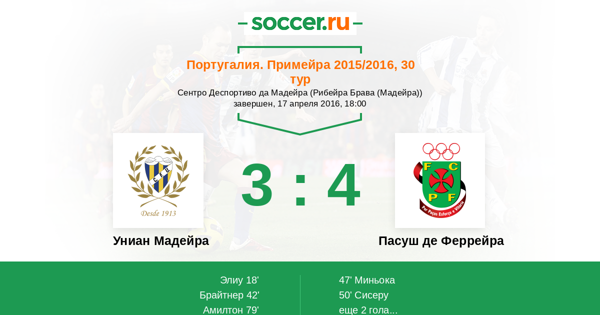 Протокол матча Униан Мадейра против Пасуш де Феррейра