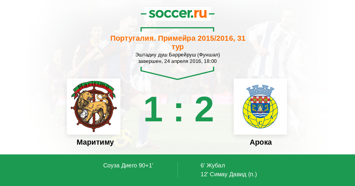 Протокол матча Маритиму против Арока