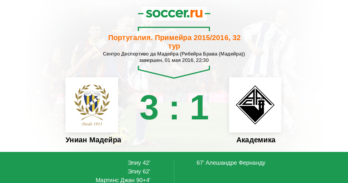 Протокол матча Униан Мадейра против Академика