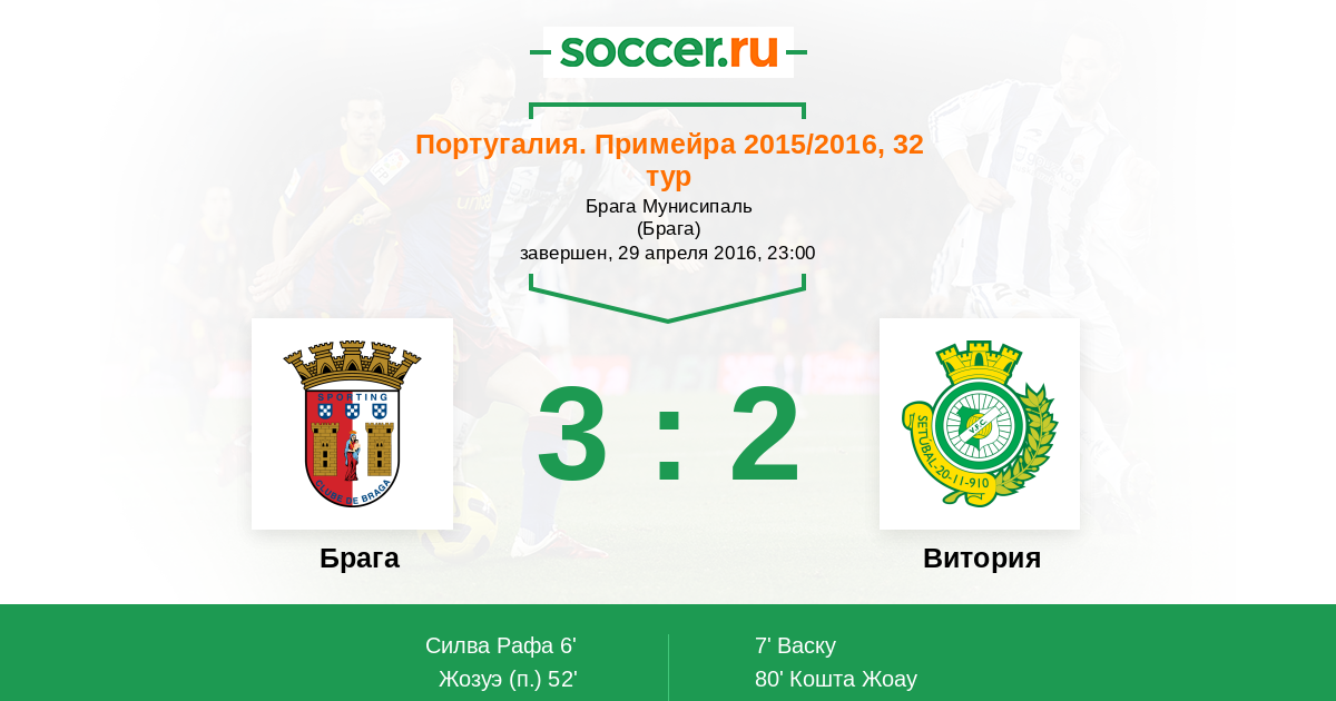 Протокол матча Брага против Витория