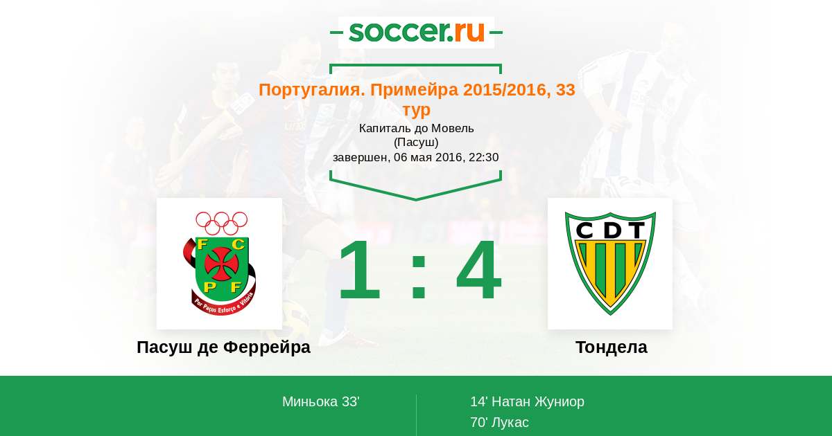 Протокол матча Пасуш де Феррейра против Тондела