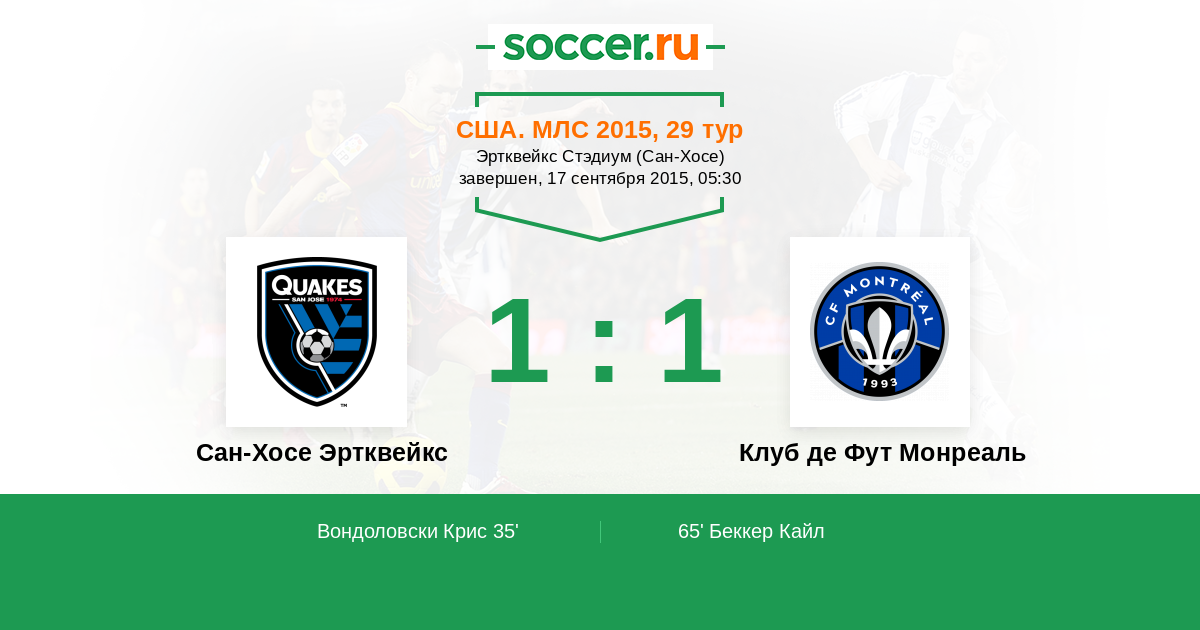 Протокол матча Сан-Хосе Эртквейкс против Клуб де Фут Монреаль
