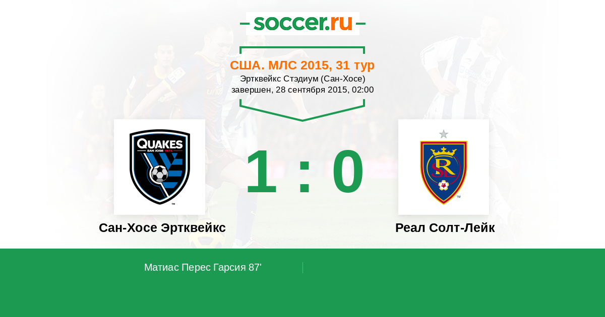 Протокол матча Сан-Хосе Эртквейкс против Реал Солт-Лейк