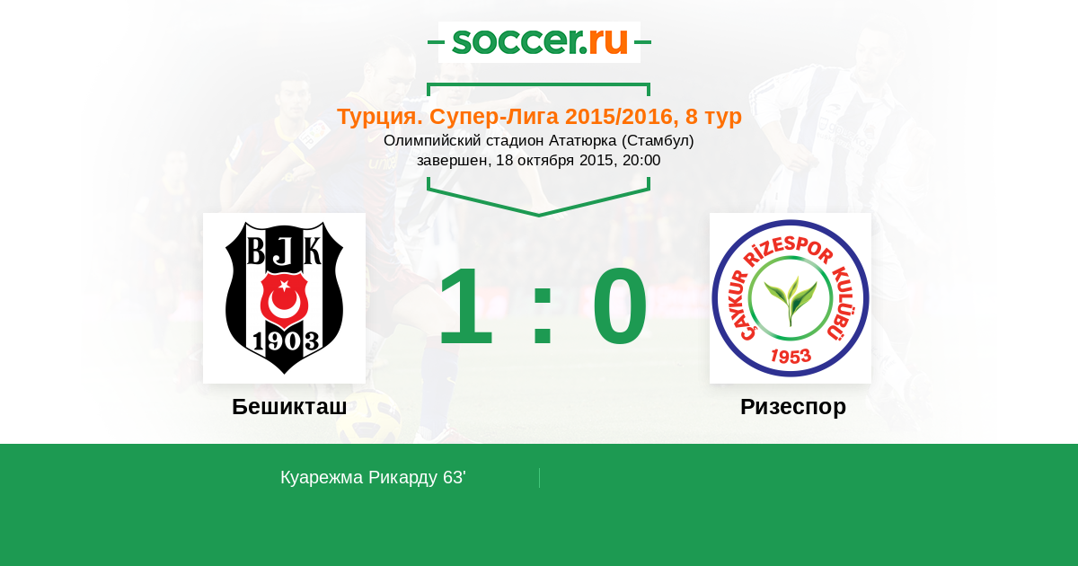 Протокол матча Бешикташ против Ризеспор